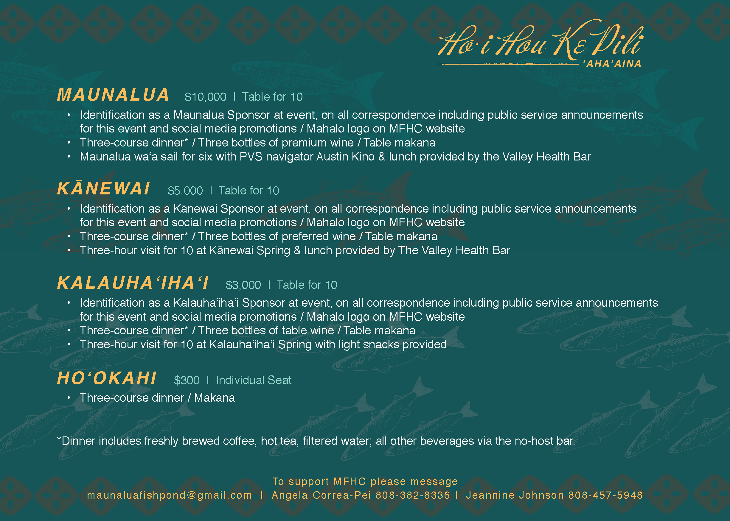 Please consider making a donation to the Maunalua Fishpond Heritage Center and our efforts to revitalize and rejuvenate Maunalua’s remaining fishponds. Donations are tax-deductible as we are a federally recognized 501(c)3 non-profit organization.